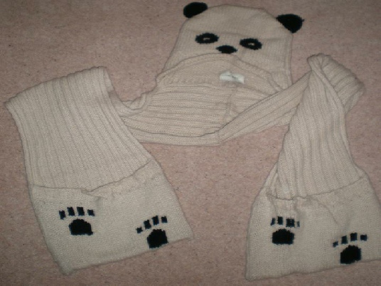 This is another of Mums panda hats with built in scarf.